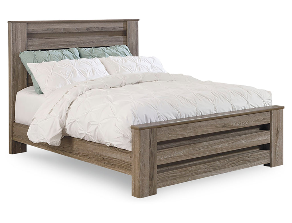 Urban sophistication with a decidedly relaxed air. If effortless elegance is the impression you’re going for, this queen panel bed is custom made to fit your space. It’s got the crisp, clean lines of a contemporary piece, but with softly weathered elements, including an earthy gray finish that lets the beauty of replicated oak grain flow through. Mattress and foundation/box spring sold separately. | Product Features